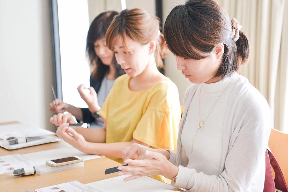 美爪を作るための正しいセルフケア方法は、実際にマイスターの手元をみて一緒に手を動かしてみると理解が深まります。